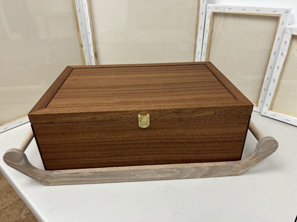 Anyway, using some sapele I picked up just for this project, Liz and I designed this simple but girthy beast to handle whatever Luke & Samantha might throw at it, or in it, or… ya know, I’m not gonna speculate any further. They wanted a box, and we delivered.